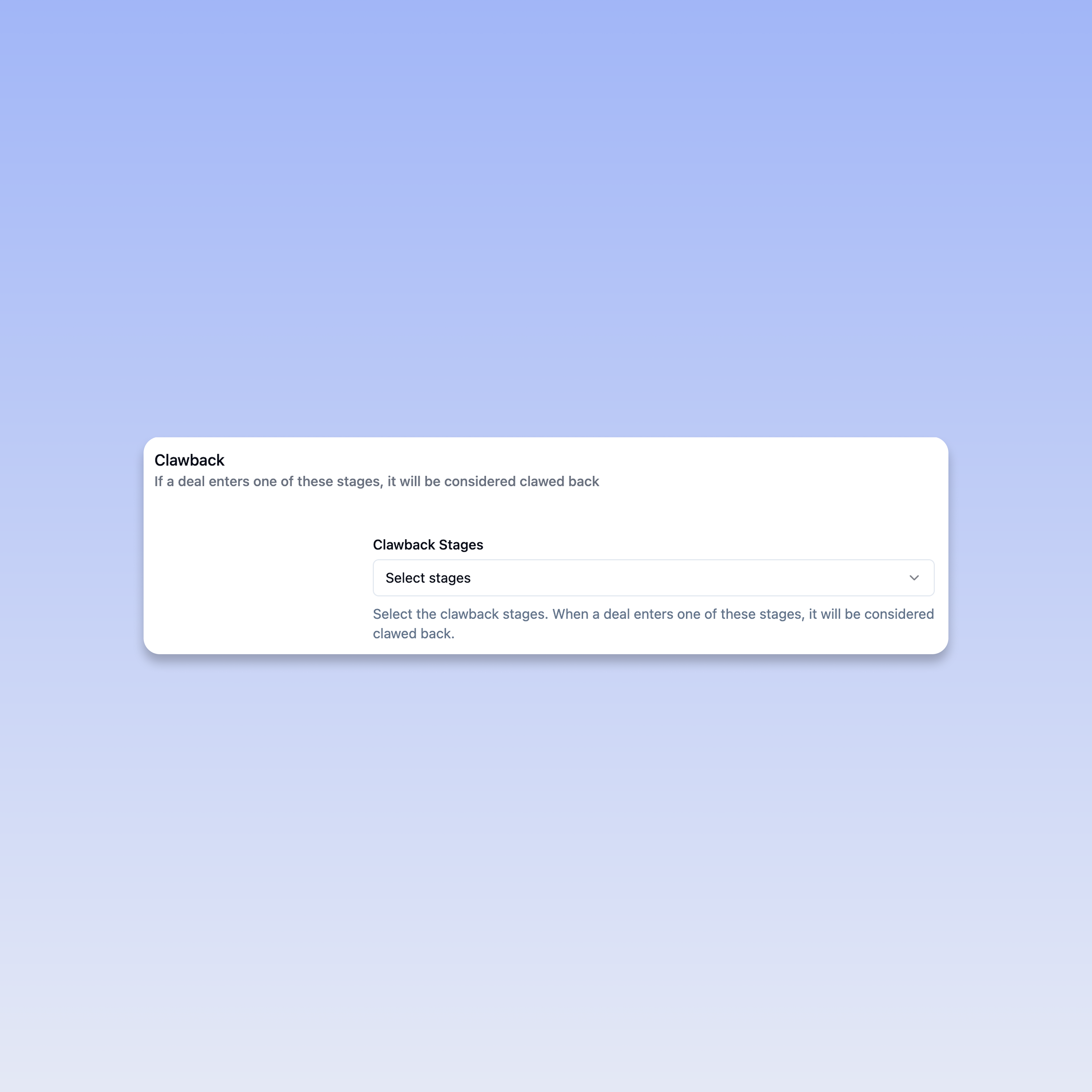 Select Clawback Stages: Choose which deal stages indicate customer churn or cancellation