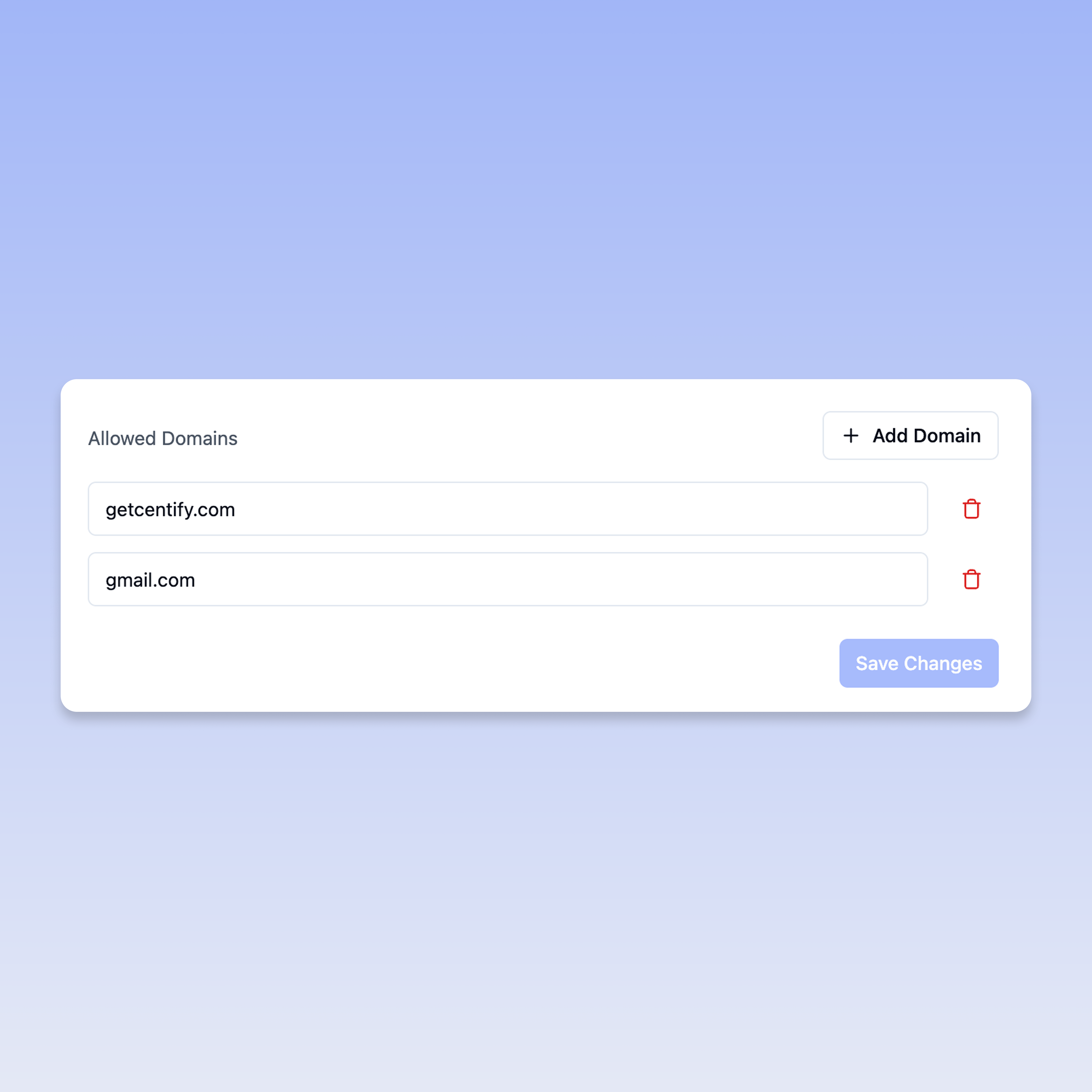 Add Domains: Use the "Add Domain" button to include new allowed domains